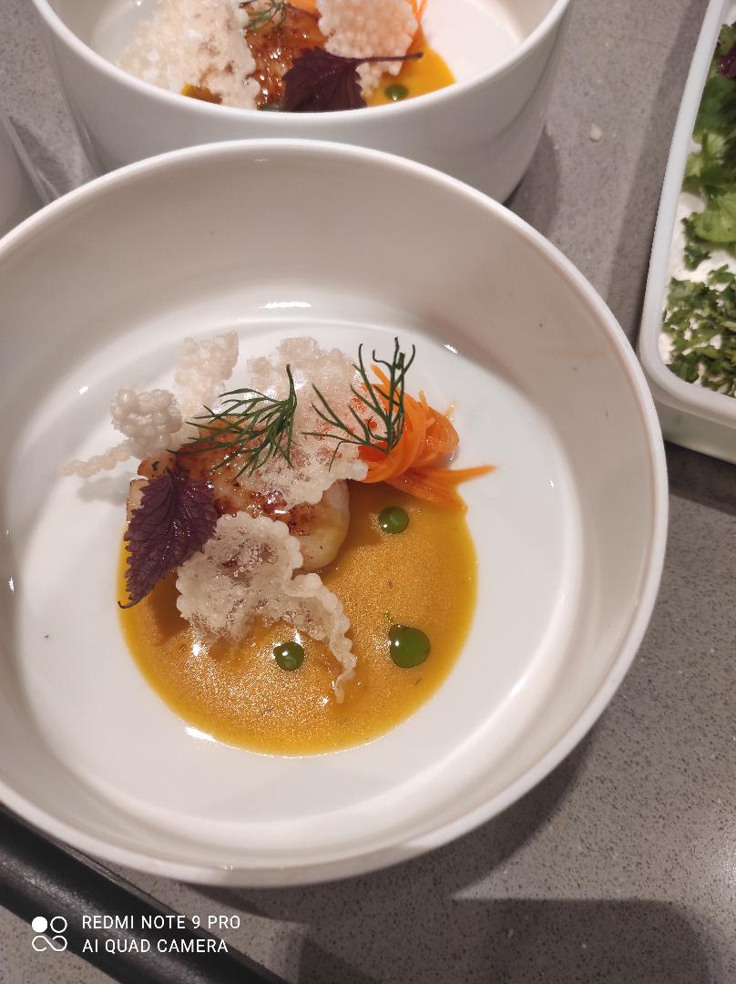 Saint Jacques de Granville, réduction de jus de carotte montée au beurre d'agrumes